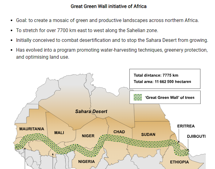 The Great Green Wall initiative would be one way of improving the sustainability of ecosystems.