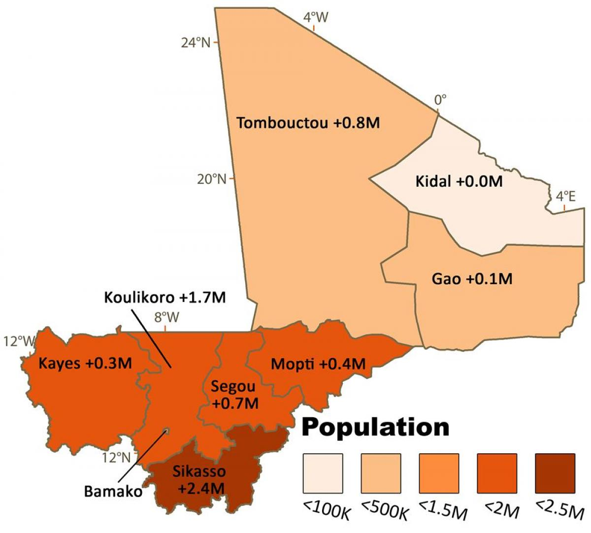 (Source 3) measures the ecological footprint and the biocapacity as the total global hectares for the nation of Mali from 1961 to 2017.