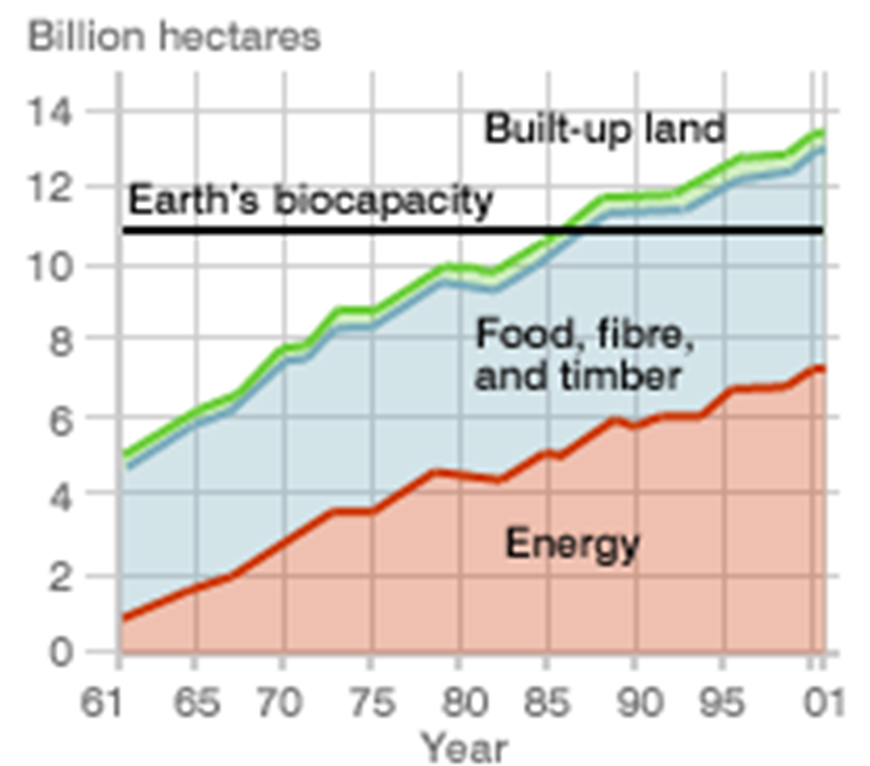 A country with an EF greater than it biocapacity is in ecological deficit.