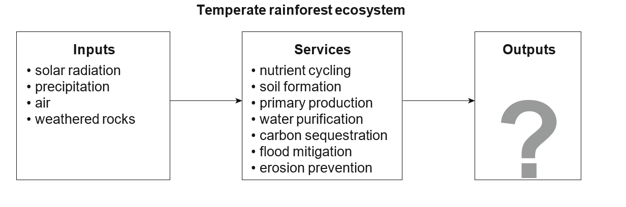 In your answer, refer to the following ecosystem characteristics: water, soil, atmosphere, vegetation, and other living things. (4)