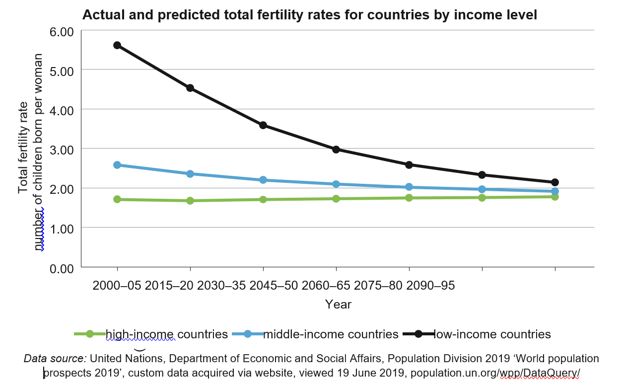 Fertility / birth rates are declining rapidly in the rest of the world as a result of increasing development