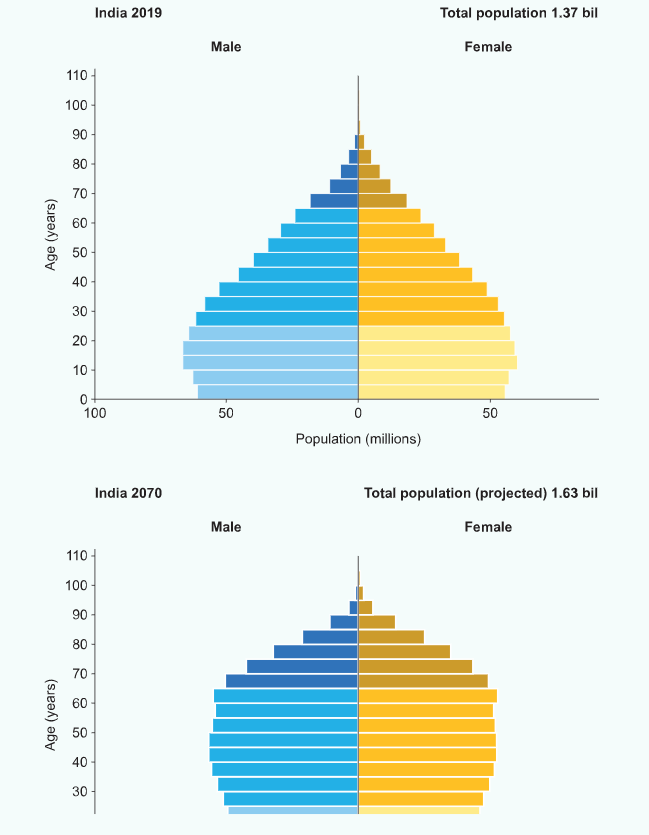 Explain how an increase in a country's % of older people might affect government policy. (3)