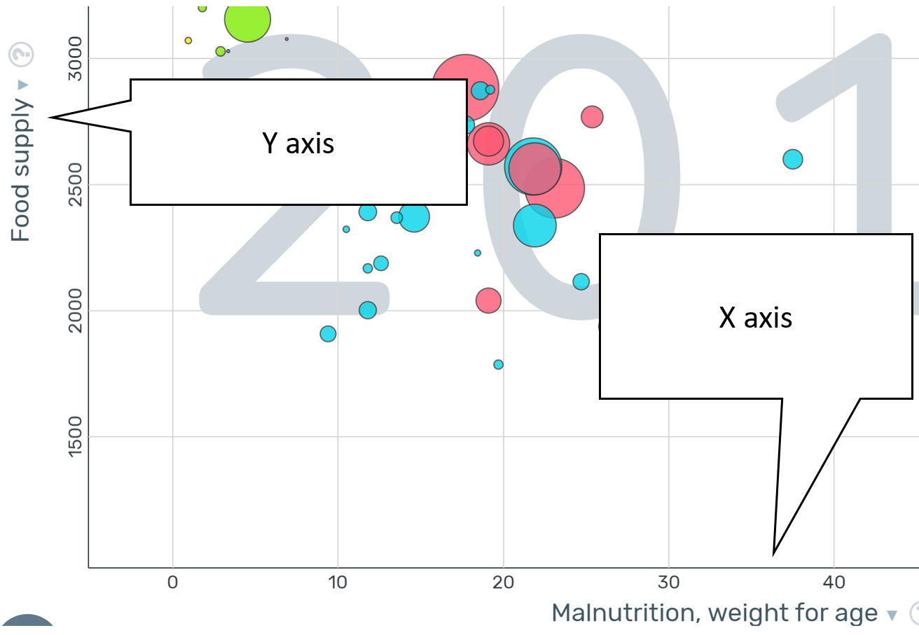 Y axis - Child mortality rate under 5. X axis - malnutrition, weight for age