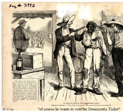 Source 1. Political Cartoon commenting on Black American voting rights, 1876.