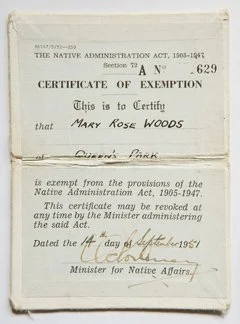 A Certificate of Exemption allowed Aboriginal people to travel freely in towns and cities away from their communities. Indigenous children were given Certificates of Exemption, often without their knowledge, they received them after being forcefully removed from their families and placed in institutions