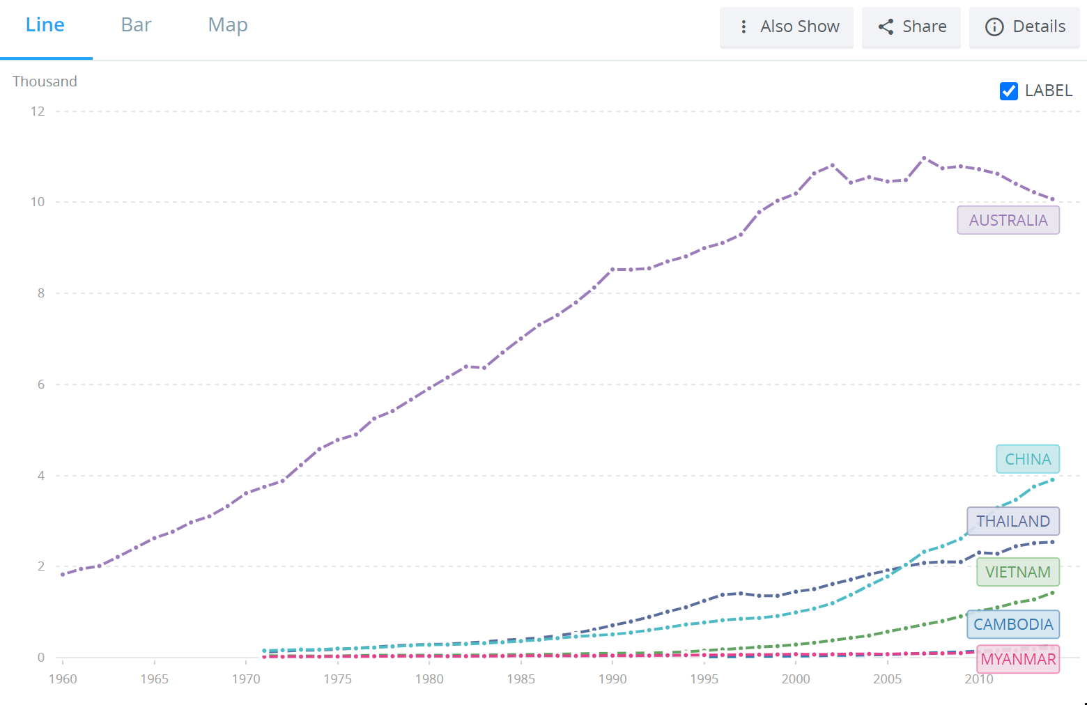 2. Annotate a graph of energy use in the Mekong countries. Electricity production is a useful indicator of levels of development
