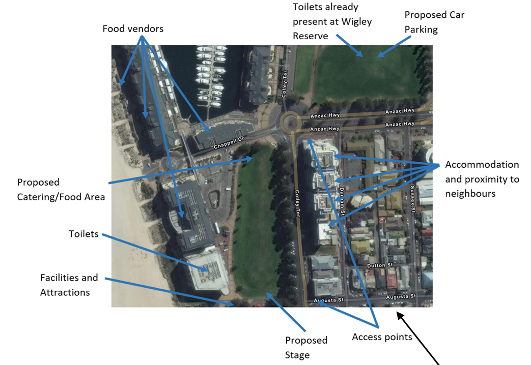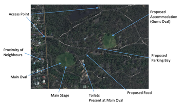 The purpose of the fieldwork: Assess the Glenelg and Oakland's Park for a potential music festival.