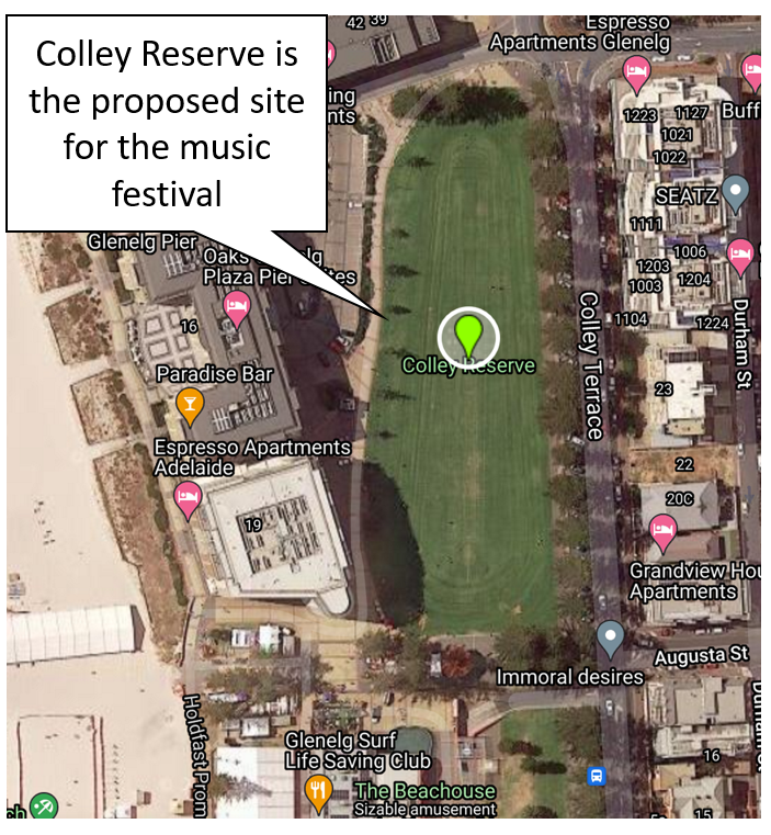 Is it possible to create a sustainable music festival at Glenelg or Oaklands Reserve?