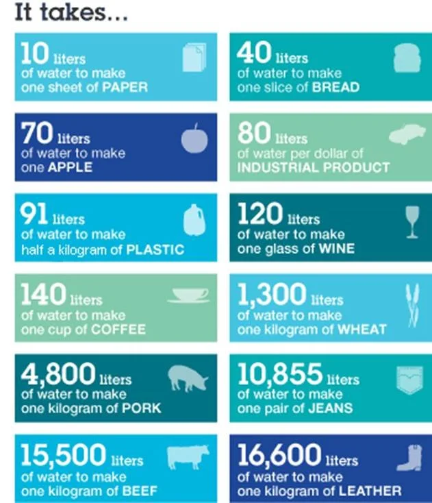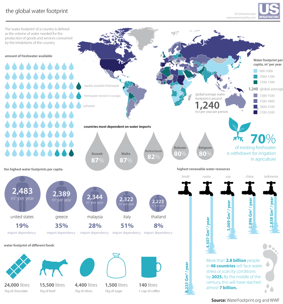 Water footprints around the world